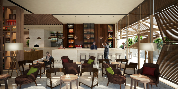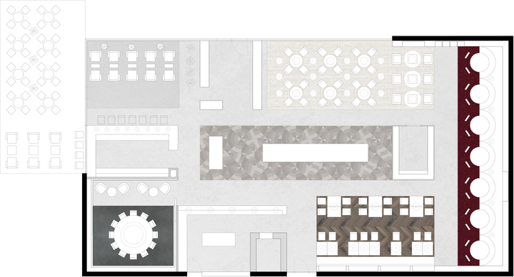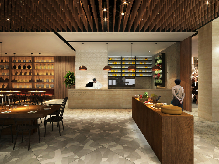 A series of distinct ambiences was created referring to a typology of public spaces and home environment, each one described with a specific Italian name, where guests can savor all the various moments of the day - through breakfast, lunch, dinner and in-between snacks.